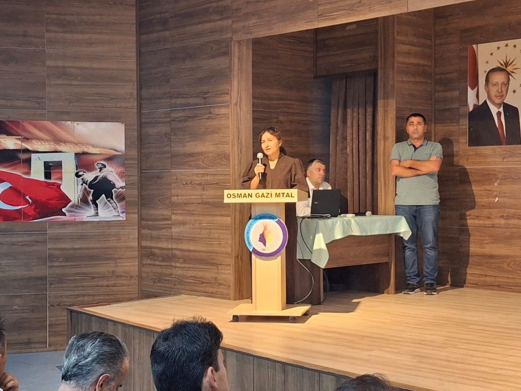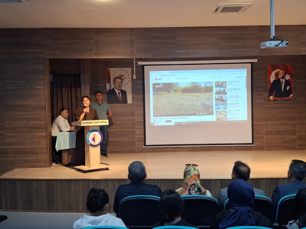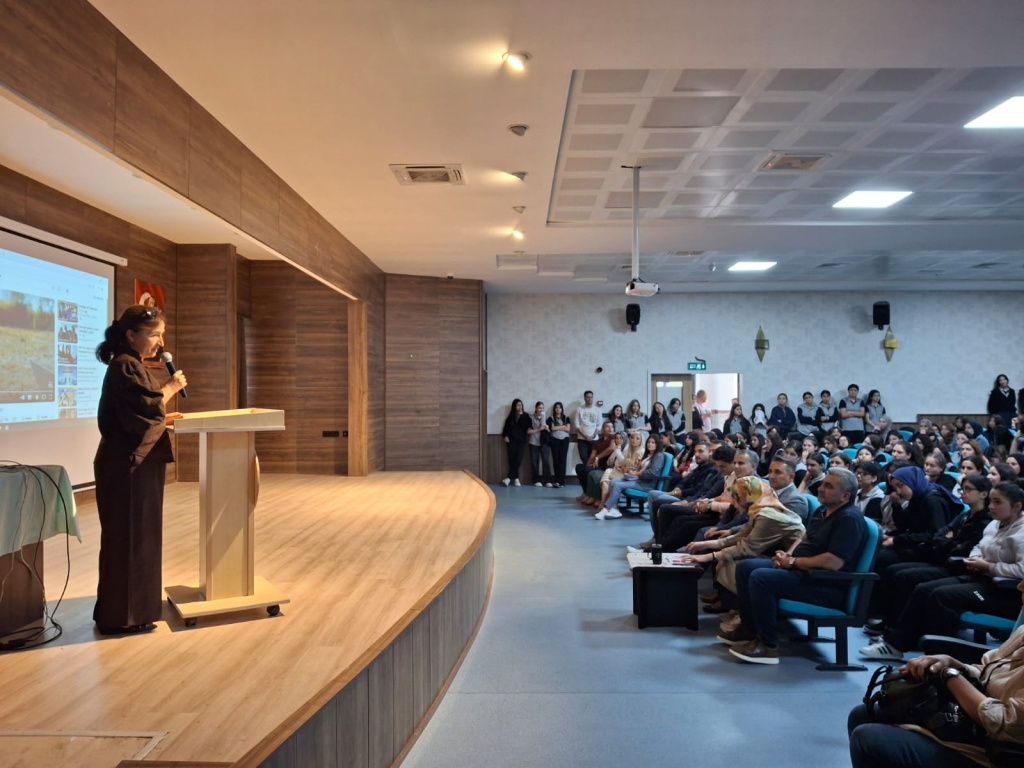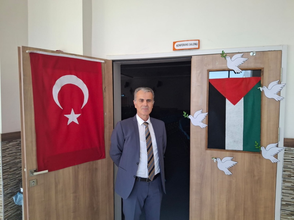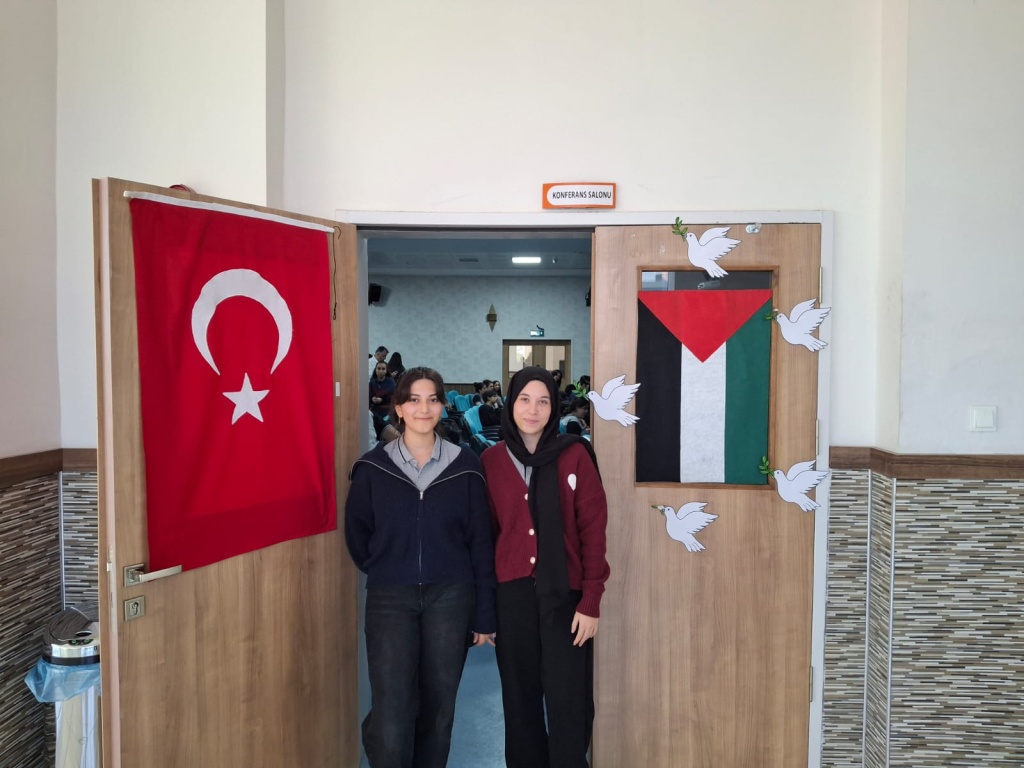 Türkiye genelinde eş zamanlı olarak düzenlenen "Filistin İçin Kalbimiz Bir" temalı farkındalık etkinliği okulumuz konferans salonunda gerçekleştirildi. Günün anlama ve önemini belirten konuşmasını yapmak için sahneye çıkan tarih öğretmenimiz Sn. Leyla ÇAMOĞLU Gazze'de yaşanan insanlık dramına dikkat çekerek öğrencilerin akademik bilginin yanında manevî değerlerle donatılmış bireyler olarak yetişmesinin önemini vurguladı. Barışa, insan haklarına ve evrensel değerlere saygılı, başta Filistin ve Gazze'de yaşanan acılara duyarsız kalmadan, insanlık onurunu savunma bilinci yüksek bireyler olmanın gerekliiğini söyledi. Etkinlik Filistin ve Gazze konulu video gösterimin ardından öğrencilerimiz tarafından yapılan kitap ayıraçlarının dağıtımı ile son buldu.